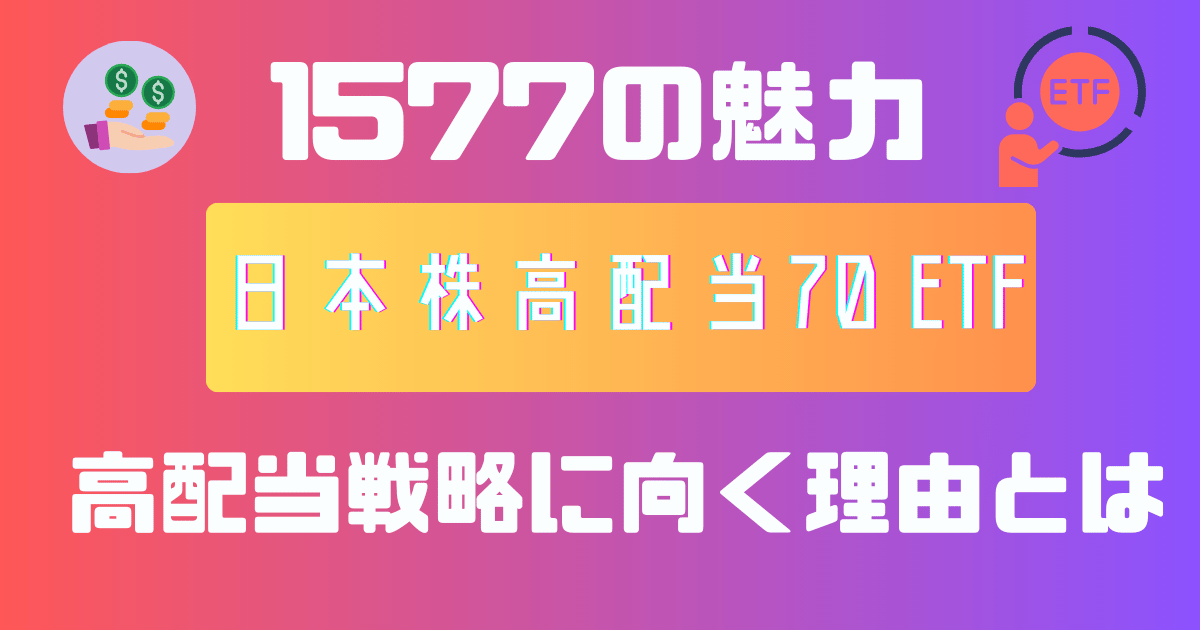 高配当株への投資は、FIRE(早期リタイア)や長期の資産形成を目指す人にとって、安定したキャッシュフローを生む重要な戦略です。なかでも 1577 NF・日本株高配当70 ETF は、高配当銘柄を広く分散して持ちたいというニーズに応える代表的なETFです。 本記事では、2026年時点の最新情報をもとに、構成銘柄・手数料・特徴を整理しながら、このETFの本質的な魅力を掘り下げていきます。 1577 NF・日本株高配当70 ETFの基本情報 運用方針と指数の特徴 1577は、野村アセットマネジメントが運用するE ...