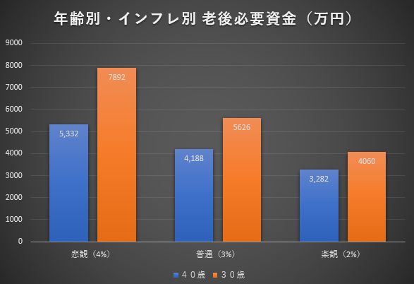 将来の物価上昇を考慮すると、30~40歳世代ではさらに多くの資金を準備しておく必要があります。