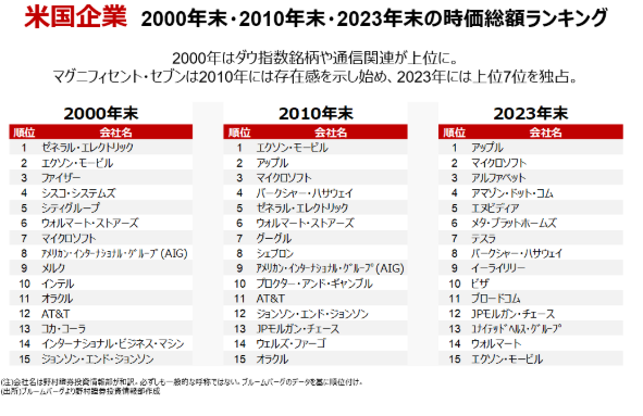 過去30年間で、アメリカの時価総額トップ10企業の顔ぶれはほぼ入れ替わっています。