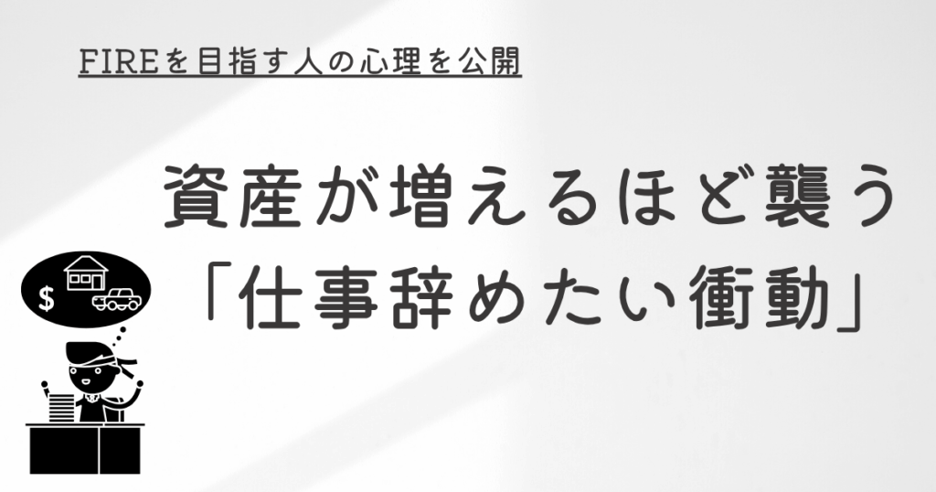 私も例外ではなく、資産が増えるたびに「仕事…辞めたい…」という気持ちのピークがやってきました。