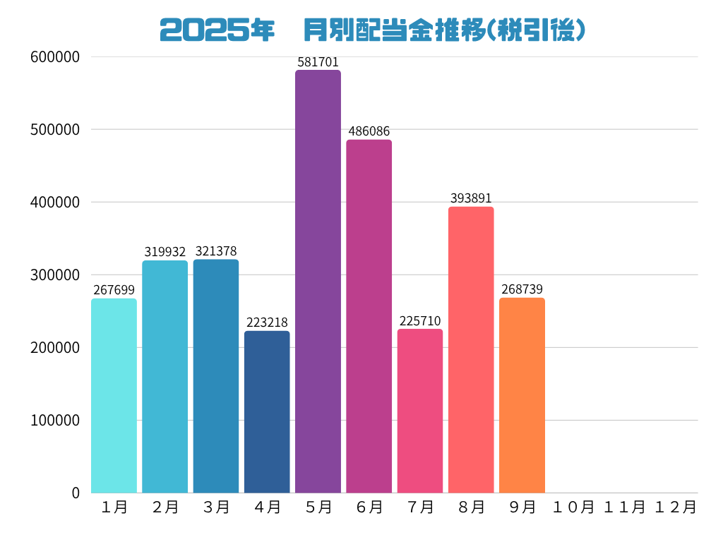 9月は30万円に到達しませんでしたが、25万円を超えを達成し、2025年の累計は300万円を超えました。