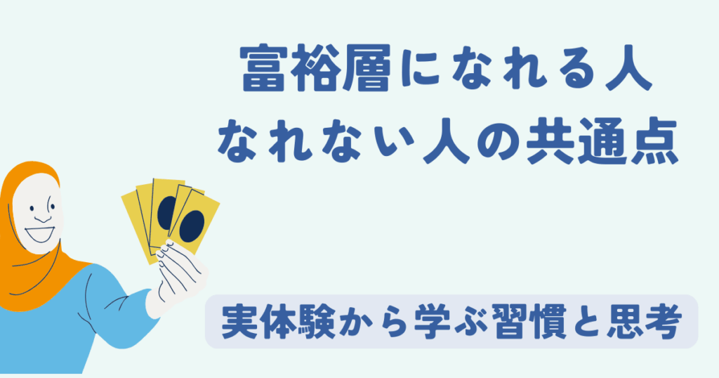 今回は、私自身の経験も交えながら、富裕層になれる人とそうでない人の共通点を紹介します。