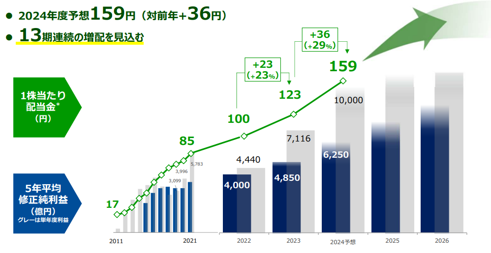 2019年以降、途切れることなく増配を続けており、2026年3月期には6期連続の増配を予定しています。