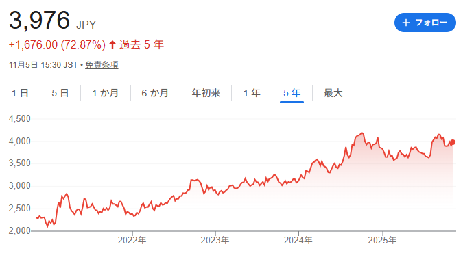 現在の株価は3,907円(2025年11月1日時点)。主要な指標は以下の通りです。