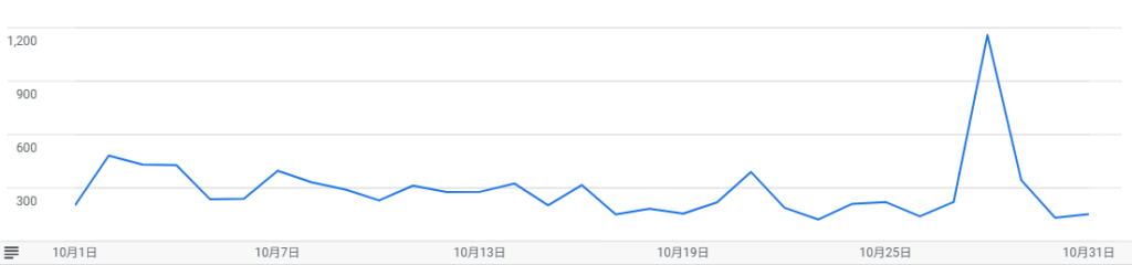 9月は2回のバズでPVが急増しましたが、10月はその反動で約1,000PVダウン。
