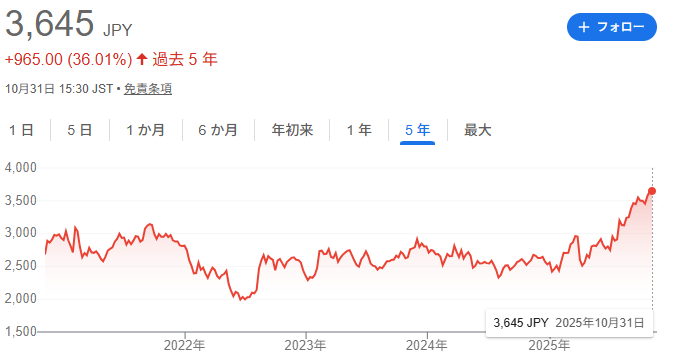 高い自己資本比率と安定的な利益構造を兼ね備えた「堅実成長型企業」であり、短期の値動きに左右されず、長期的に安定したリターンを狙える銘柄といえます。