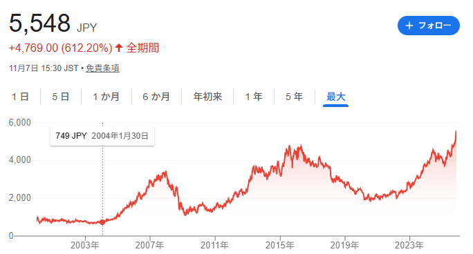 株価は堅調に推移し、2025年現在も5,500円台を維持。