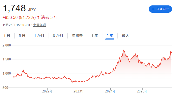 ● 株価:1,748円