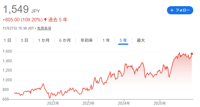 利回り4.5%前後を維持しつつ、増配基調が続いています。FIREや配当再投資戦略との相性も良好です。