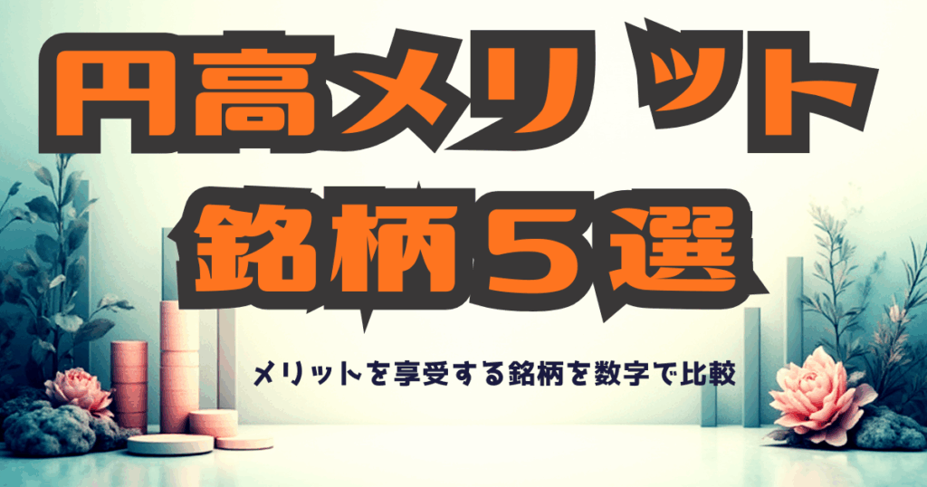 本記事では、円高=輸入株有利という一般論にとどまらず、業績・財務・投資価値の視点から見た円高メリット銘柄5社を厳選して紹介します。FIREや長期投資を意識する方にとって、円高局面はむしろ仕込み時になり得えます。