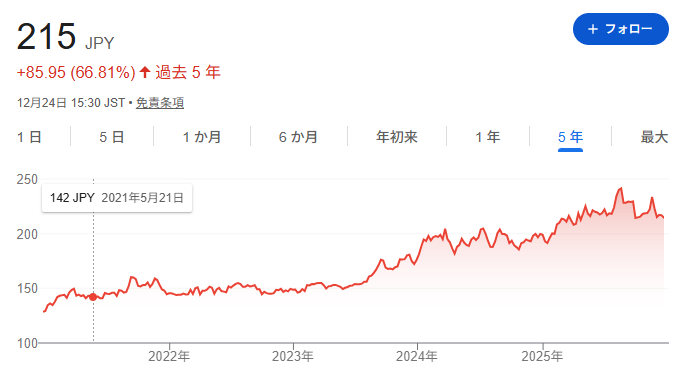 ここ4年で株価は1.5倍に成長。