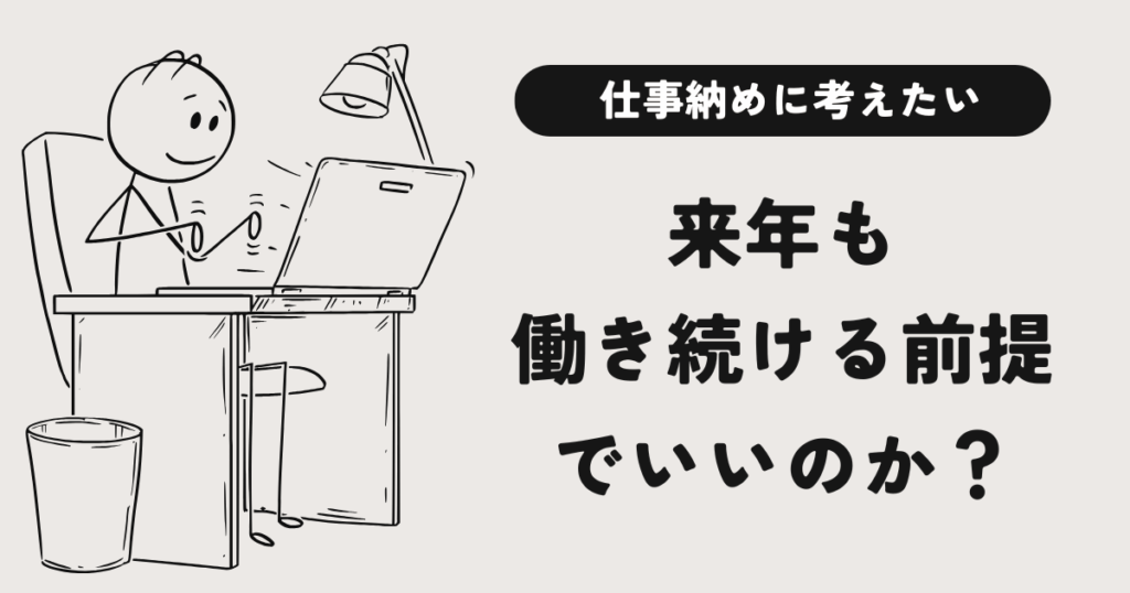 仕事納めに考えたいのは、来年も働くかどうかそのものではありません。来年も働き続ける前提で思考停止していないかという点です。