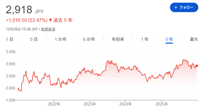 高成長株ではないものの、安心して保有し、配当を受け取りながら成長を待つ銘柄として、今後も注目しておきたい存在です。