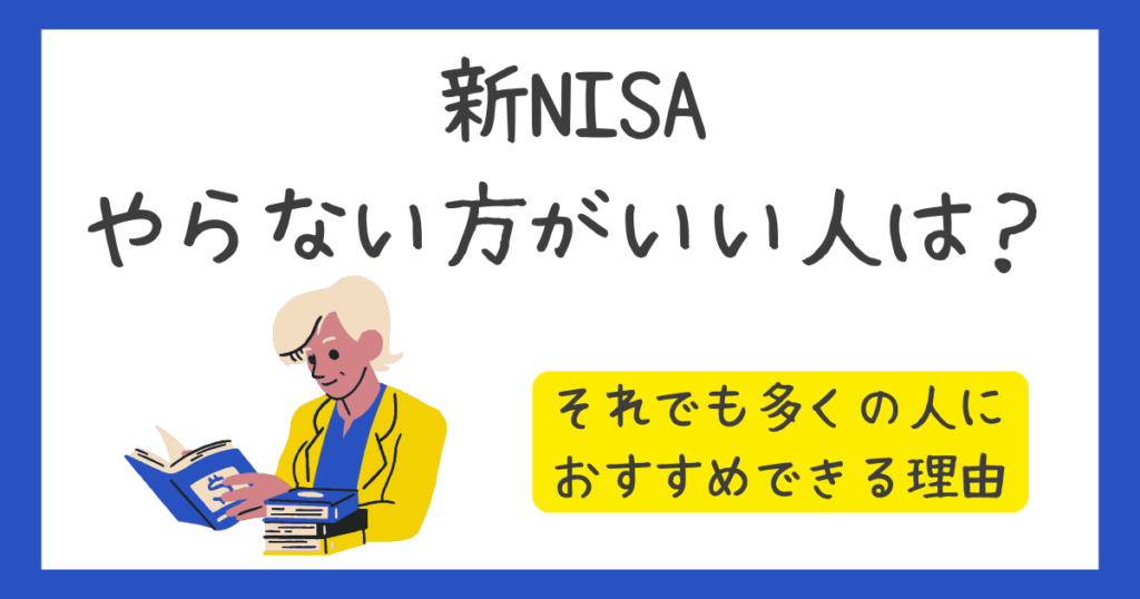 この記事では、新NISAをあえてやらない方がいい人や今はフルで使わなくていい人の特徴を整理しながら、それでも新NISAが有効である理由を、冷静に掘り下げていきます。