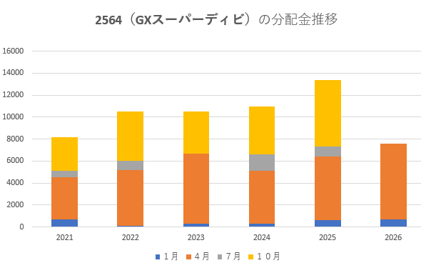 2564の魅力の中心にあるのは、やはり分配金です。以下は直近の分配実績です。